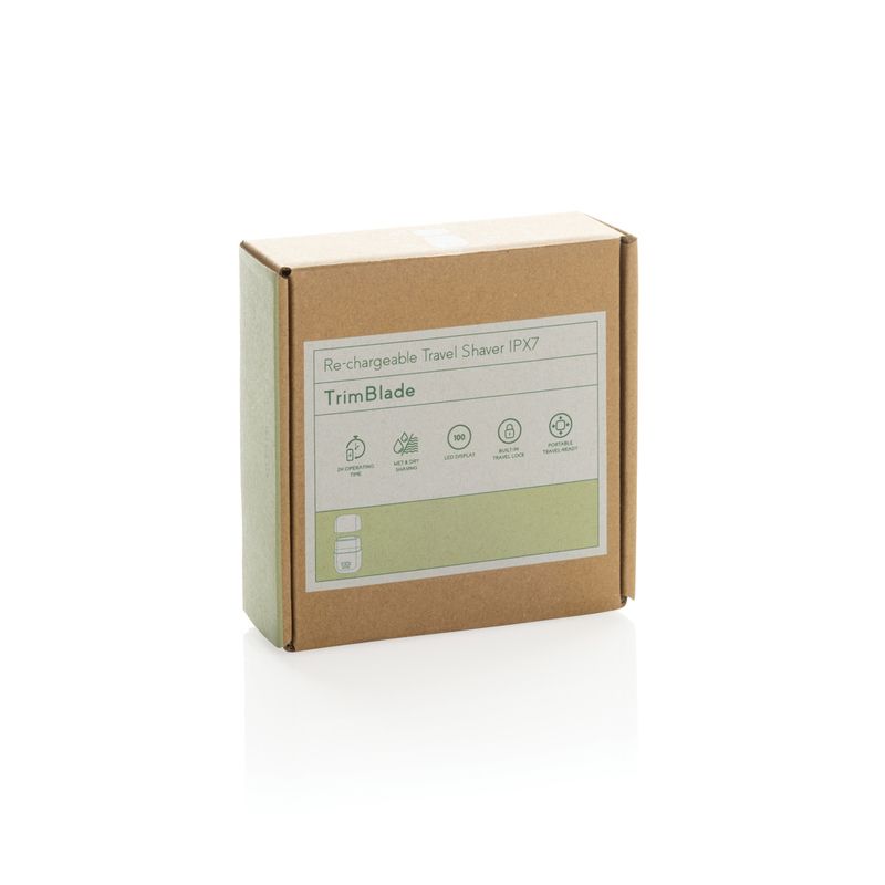 La Afeitadora de viaje recargable TrimBlade IPX7 destaca por su versatilidad para el aseo diario tanto en seco como en húmedo. Este modelo ofrece una solución de grooming avanzada, utilizando una estructura estanca que garantiza un rendimiento fiable bajo el agua y una limpieza sencilla bajo el grifo tras cada uso. Su estética técnica la convierte en el soporte publicitario ideal para el sector del bienestar, agencias de viajes o campañas de fidelización premium que busquen un detalle de electrónica de consumo con una gran autonomía.