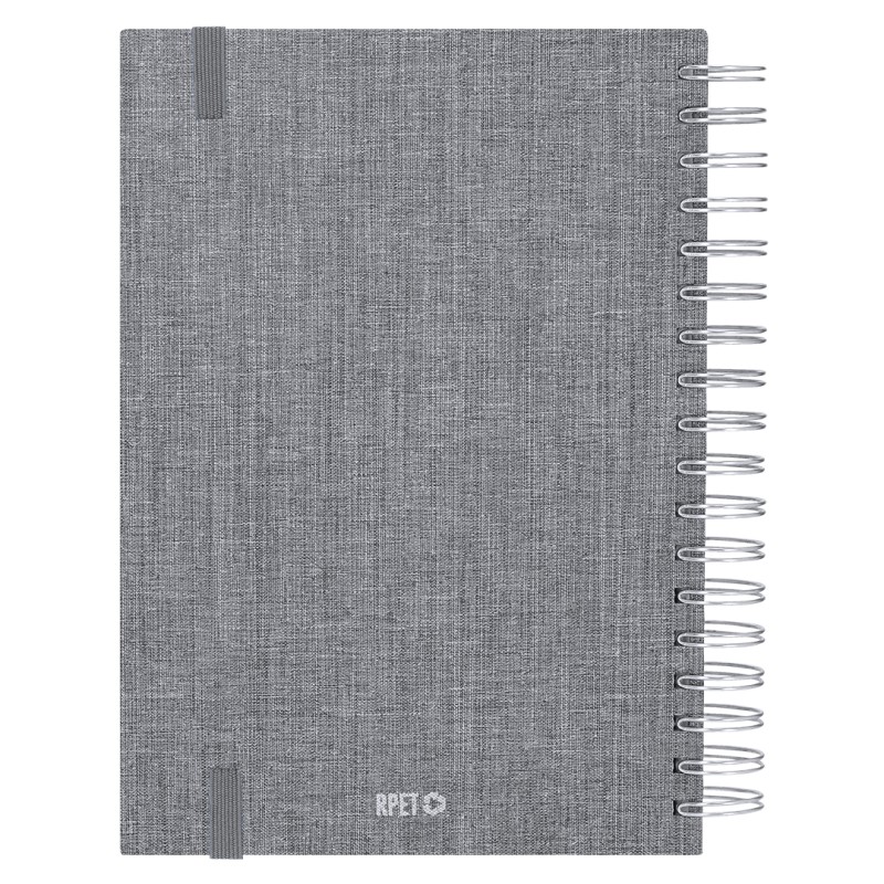 Esta elegante agenda de anillas en formato B5 se distingue por su diseño cuidadosamente elaborado y su compromiso con la sostenibilidad. Está fabricada con suave poliéster rPET, un material innovador derivado del reciclaje de botellas de plástico, contribuyendo activamente a la reducción de residuos plásticos y apoyando la protección del medio ambiente.