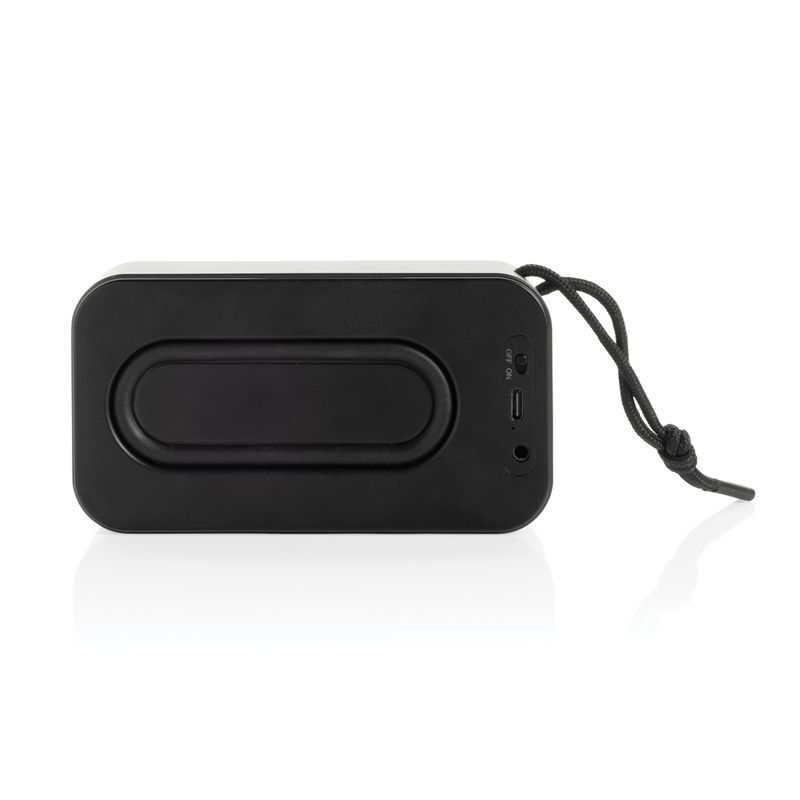 La batería de polímero de iones de litio de 1200 mAh ofrece hasta 5 horas de reproducción continua al 50% del volumen y se recarga completamente en solo 2,5 horas mediante el cable USB-C a USB-C incluido. Incluye además un puerto AUX y se presenta en una elegante caja de regalo con certificación FSC, libre de PVC y perfecta para destacar en acciones promocionales sostenibles.