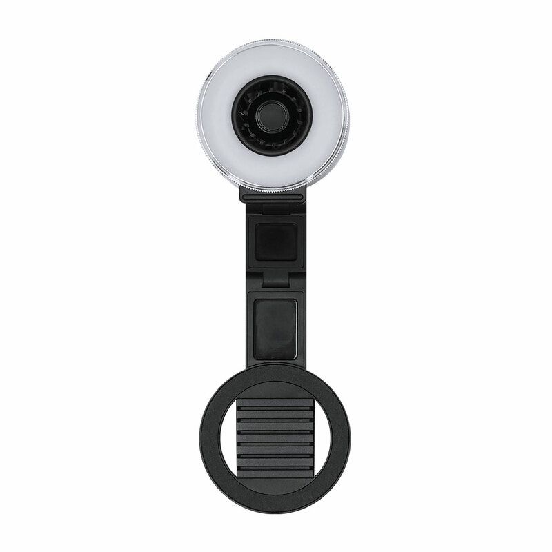 Anillo de luz con ventilador integrado fabricado en resistente ABS con acabado mate. Diseñado para mejorar la iluminación mientras proporciona una agradable ventilación, es un accesorio ideal para crear contenido, realizar videollamadas o trabajar cómodamente con el smartphone.