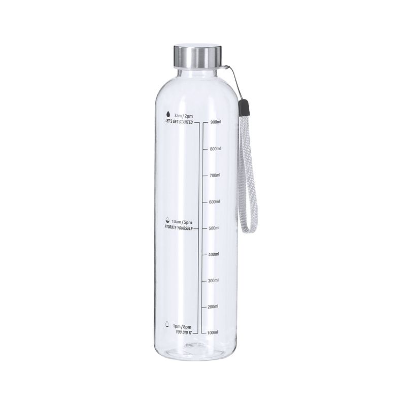 Bidón fabricado en RPET de 1L de capacidad, diseñado para ayudarte a mantener una hidratación adecuada durante todo el día. Su cuerpo transparente permite visualizar fácilmente el nivel de agua restante, convirtiéndolo en un accesorio práctico tanto para el trabajo como para el gimnasio, actividades deportivas o el uso diario.