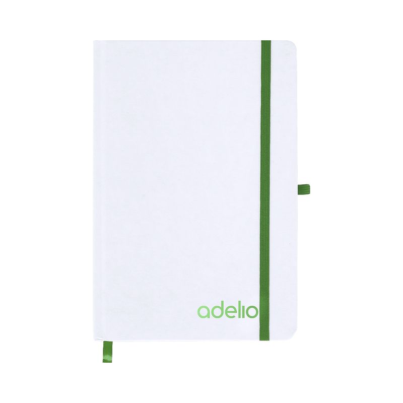 Bloc de notas con tapas rígidas blancas fabricadas en cartón reciclado, diseñado para ofrecer una solución práctica, duradera y sostenible para la escritura diaria. Con 80 hojas a una raya, este bloc es ideal para tomar notas, realizar listas o apuntes tanto en la oficina como en el hogar o en clase. Su portada rígida protege el contenido y le otorga un acabado elegante y profesional.