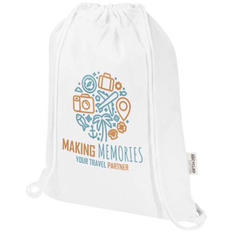 Bolsa con cordón reciclada 180 g/m² Peru Blend diseñada para ofrecer resistencia, ligereza y sostenibilidad en el uso diario. Está fabricada con un 60 % de algodón reciclado certificado GRS y un 40 % de poliéster reciclado (RPET) también certificado GRS, garantizando materiales responsables y una cadena de suministro completamente verificada.