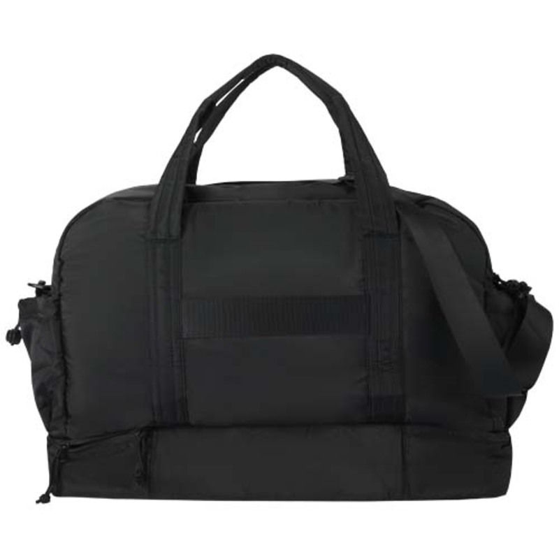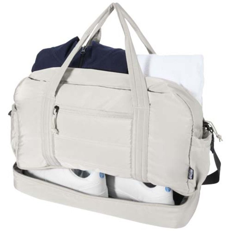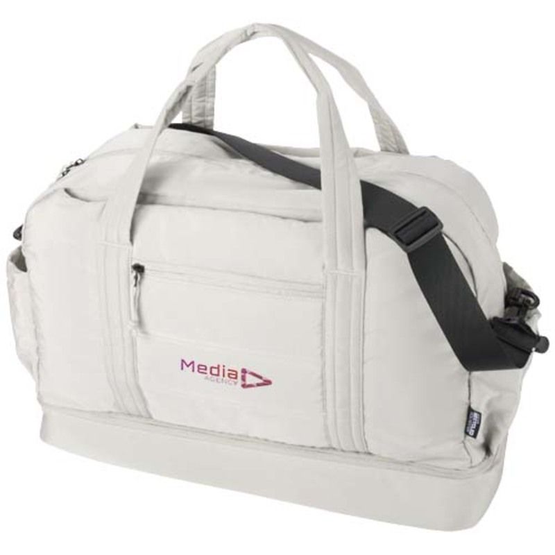 Bolsa de lona reciclada 30L Puffer diseñada para ofrecer máxima funcionalidad en viajes cortos, sesiones de gimnasio o uso diario. Fabricada en poliéster reciclado con certificado GRS, combina resistencia, ligereza y un diseño moderno que se adapta a un estilo de vida activo.