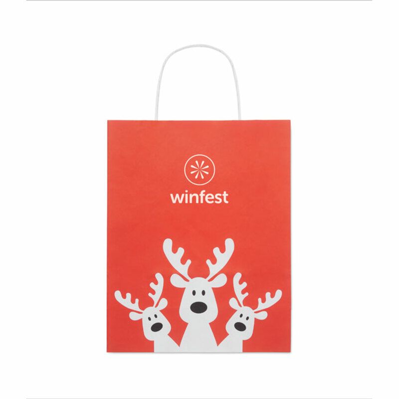 La bolsa personalizable de papel pequeña Bao es el envoltorio perfecto para dar un toque especial a regalos y detalles navideños. Compacta y práctica, está pensada para envolver artículos de menor tamaño sin perder elegancia. Fabricada en la Unión Europea con un 50 % de papel reciclado, combina ligereza y sostenibilidad en un mismo producto.