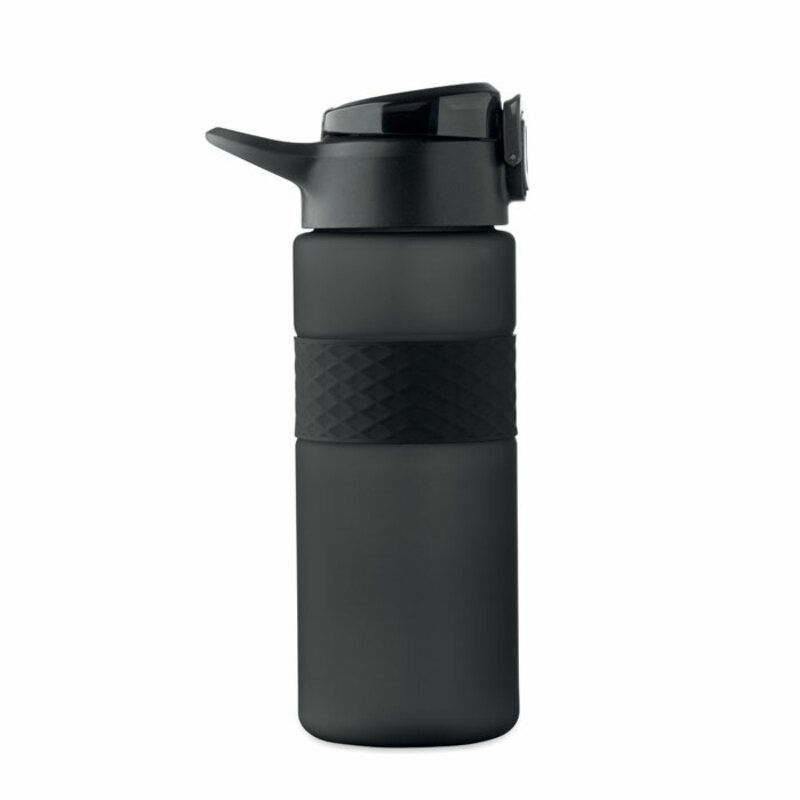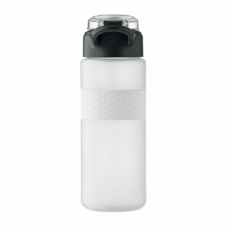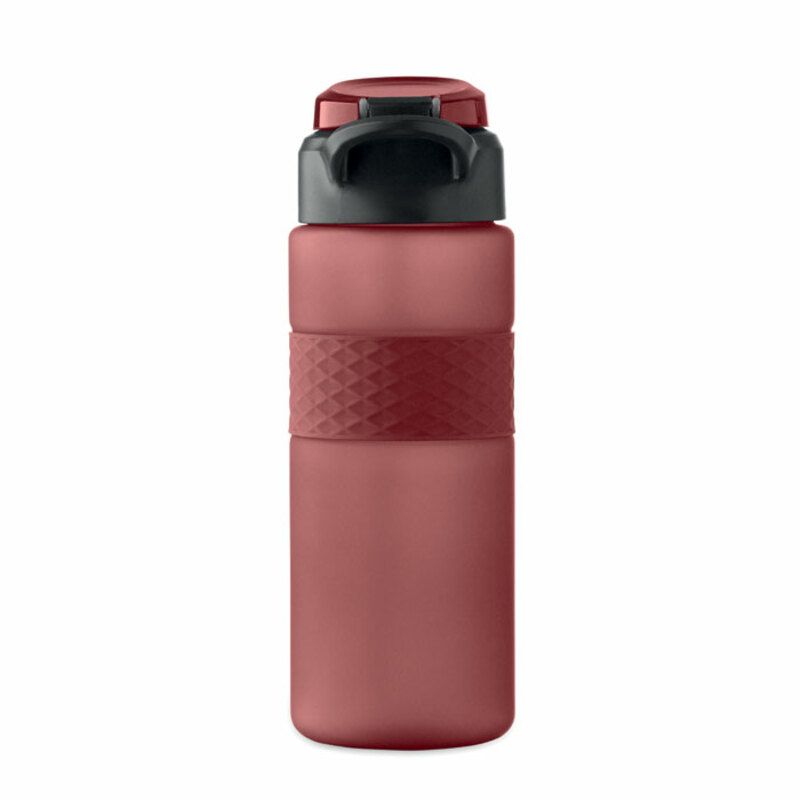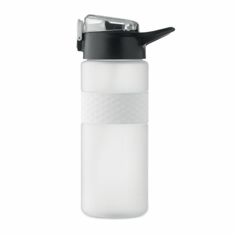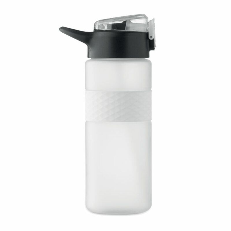 Cuenta con una tapa abatible de PP y un cierre de seguridad, que garantiza que la botella sea completamente antifugas, mientras que la pajita integrada permite beber cómodamente con una sola mano. Además, su asa de silicona facilita el transporte, aportando comodidad y practicidad en cualquier situación.