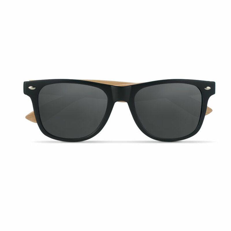 Estas gafas de sol para merchandising cuentan con patillas de bambú, una montura de PC y unas modernas lentes de espejo que tienen protección UV400.