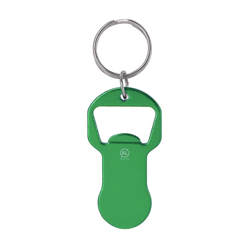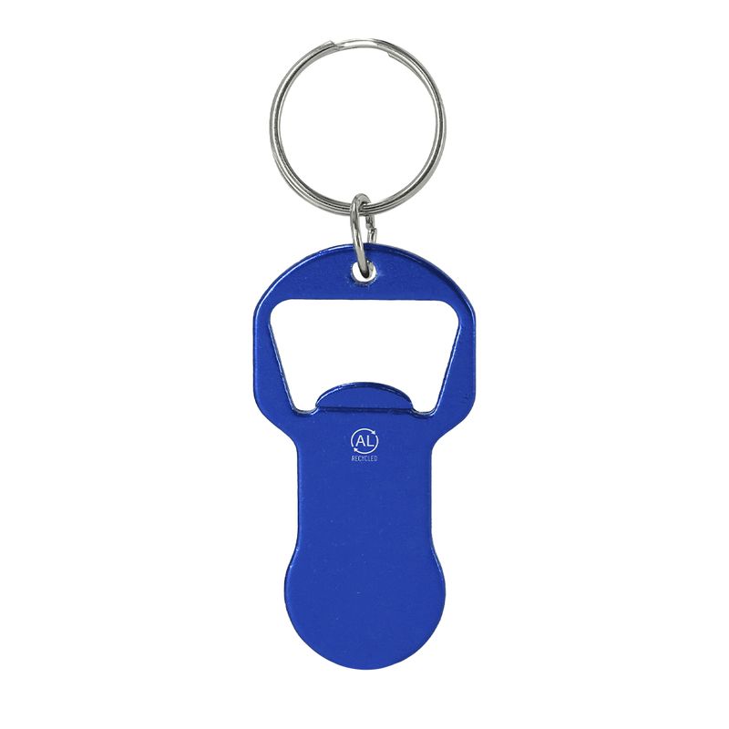 El llavero moneda abridor de aluminio reciclado con acabado metálico brillante Belarox es un accesorio multifuncional que destaca por su parte superior diseñada para la apertura de botellas y un extremo inferior con forma de moneda para carros de compra. Este modelo ofrece una solución de bolsillo versátil y sostenible, utilizando metal recuperado que garantiza una estructura sólida para resistir la tensión mecánica sin comprometer el respeto por el medio ambiente. Su estética técnica y pulida lo convierte en el soporte publicitario ideal para supermercados, marcas de bebidas, ferias de ecología o campañas de fidelización que busquen un artículo de gran utilidad diaria con certificación de material reciclado.