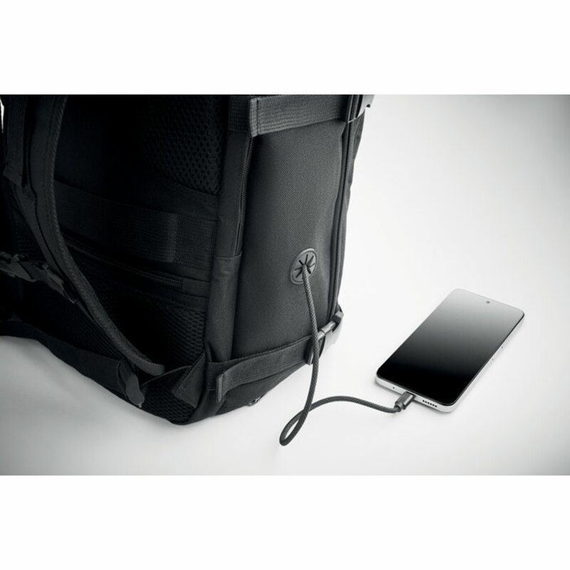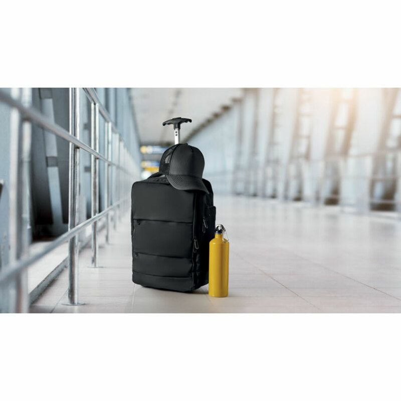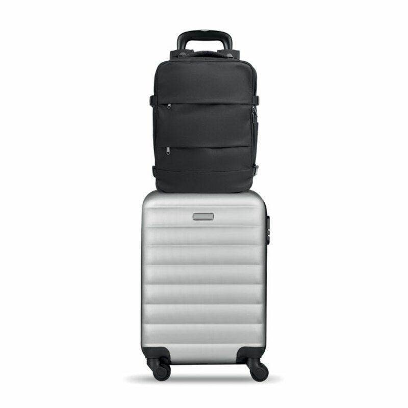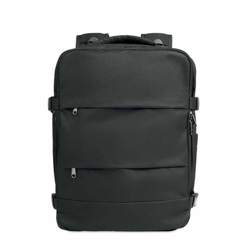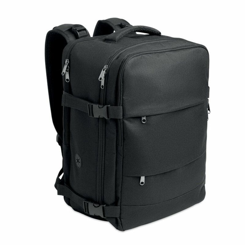 Cuenta además con correa trasera para acoplarla a un trolley, mejorando la comodidad en aeropuertos o trayectos largos. Por su funcionalidad, su formato apto como equipaje de cabina y su fabricación en material reciclado, esta mochila se presenta como un regalo corporativo práctico y sostenible para campañas de movilidad, incentivos o acciones promocionales vinculadas al viaje.