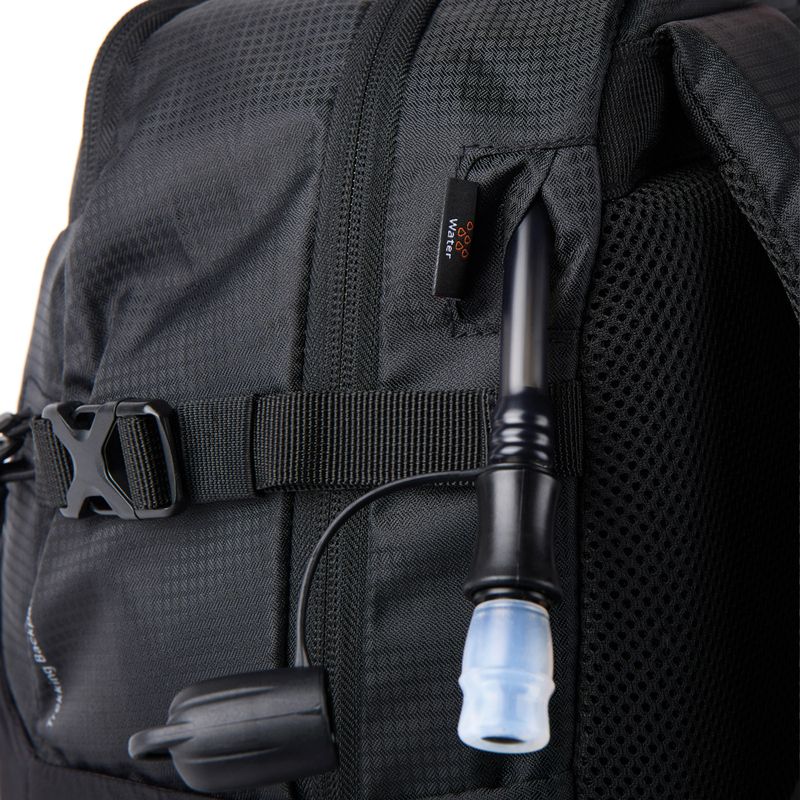 Lo que realmente marca la diferencia en este modelo es su equipamiento pensado para la aventura. Viene con varios compartimentos para organizar tu equipo, bucles elásticos para accesorios y un respaldo ergonómico de malla que te mantiene fresco durante la marcha. Además, incluye extras de seguridad como detalles reflectantes para ser visto con poca luz, un silbato en las correas ajustables y una funda para lluvia integrada para que el clima no te pare los pies.