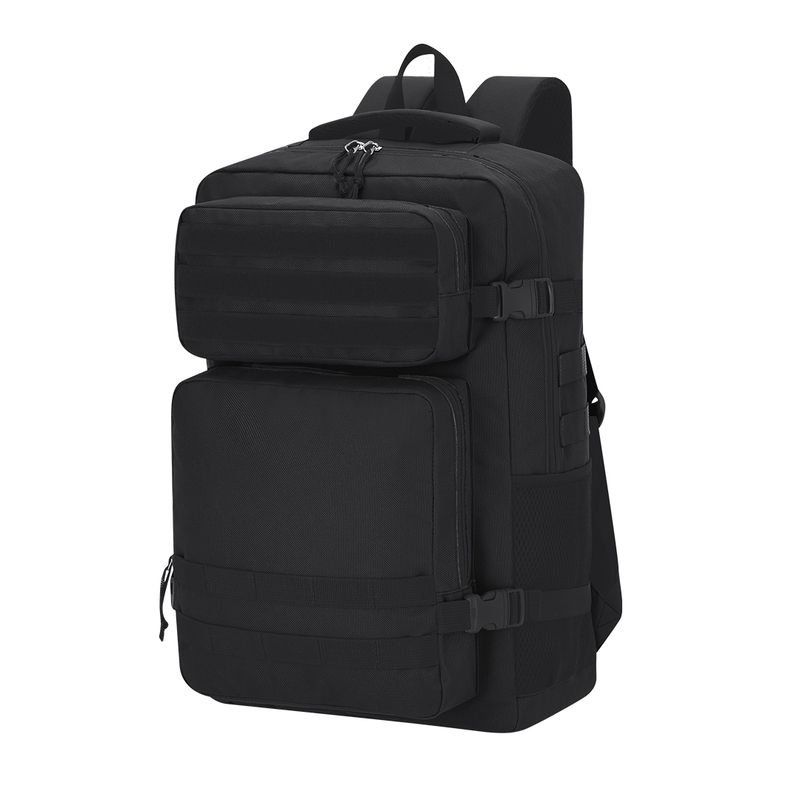 La parte frontal incorpora múltiples bolsillos, junto con soportes elásticos y velcros que permiten colgar o fijar accesorios necesarios durante la actividad. El compartimento principal con cierre de cremallera de doble tirador ofrece amplia capacidad e incluye espacio apto para portátil de hasta 17 pulgadas, facilitando el transporte seguro de dispositivos electrónicos.