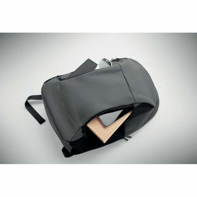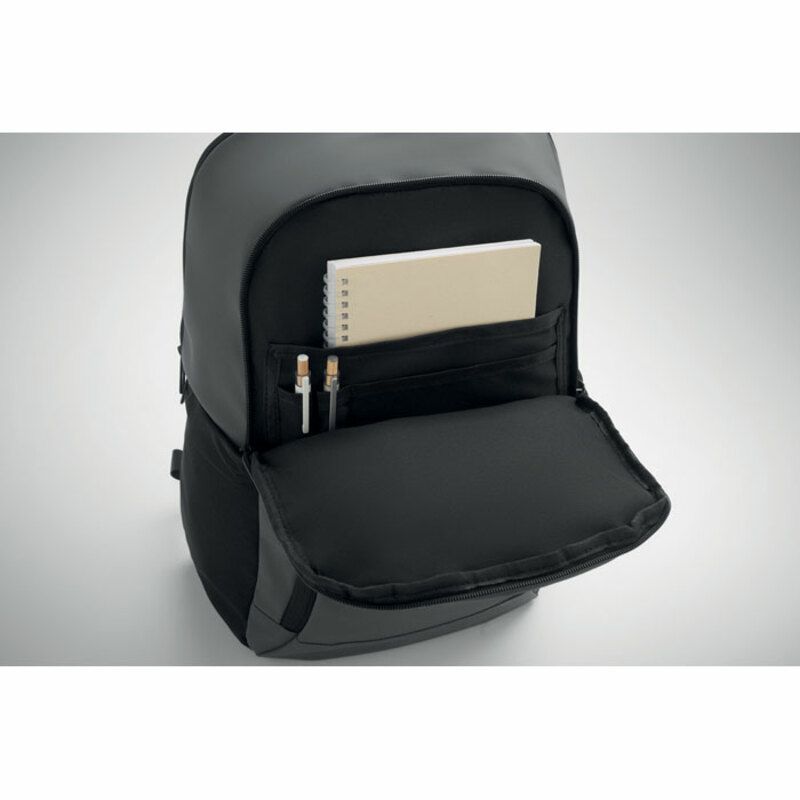 Esta mochila para portátil de 15'' Korovin combina diseño elegante, funcionalidad y sostenibilidad, convirtiéndola en un artículo ideal para uso profesional o como regalo corporativo de alto valor percibido. Fabricada en PU suave, ofrece un acabado moderno y resistente al desgaste diario, asegurando una presencia cuidada en cualquier entorno.