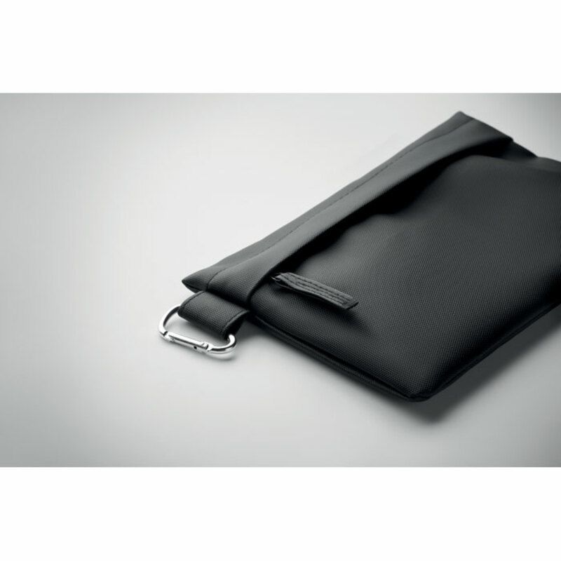 Su cierre de cremallera asegura que los artículos personales o de viaje se mantengan protegidos en todo momento, ofreciendo practicidad sin renunciar al diseño. Ideal para eventos corporativos, ferias o como regalo de empresa, este neceser personalizable permite destacar la identidad de tu marca con un marcaje elegante y visible. Su material reciclado rPET no solo demuestra compromiso con el medioambiente, sino que también refuerza los valores de sostenibilidad de tu negocio.