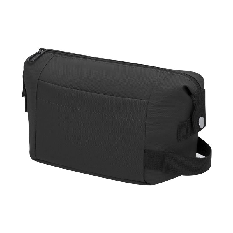 El neceser confeccionado en suave y elegante pu con cierre de cremallera y tirador metálico negro Plinth es un accesorio de organización que destaca por su acabado sofisticado y un interior completamente forrado en color negro. Este modelo ofrece una solución de almacenamiento premium, utilizando piel sintética de gran resistencia que garantiza la protección de los artículos de aseo frente a la humedad y el desgaste cotidiano. Su estética minimalista y ejecutiva lo convierte en el soporte publicitario ideal para marcas de lujo, sector hotelero, kits de viaje para empresas o campañas de fidelización que busquen un detalle de alta gama con una estructura firme y duradera.