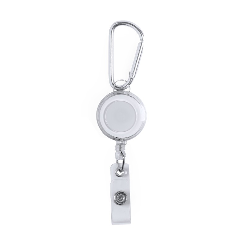 El mecanismo extensible alcanza hasta 65 cm, ofreciendo una gran comodidad de uso sin necesidad de soltar el objeto fijado. Incluye un resistente mosquetón metálico que facilita su enganche a cinturones, bolsos o mochilas, adaptándose a diferentes entornos profesionales o promocionales.