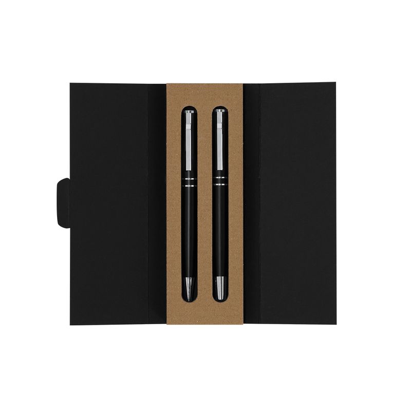 El set de bolígrafos de aluminio Yonder es la elección definitiva para el profesional que busca la máxima distinción y precisión en su escritura diaria. Este conjunto premium, compuesto por un bolígrafo de pulsador y un roller de escritura fluida, destaca por su fabricación en aluminio reciclado con un sofisticado acabado en negro mate y detalles plateados. Por su equilibrio ergonómico y su estética minimalista, se ha consolidado como uno de los regalos para gente que teletrabaja más elegantes, aportando un toque de autoridad y profesionalismo a cualquier escritorio o firma de documentos importantes desde el hogar.