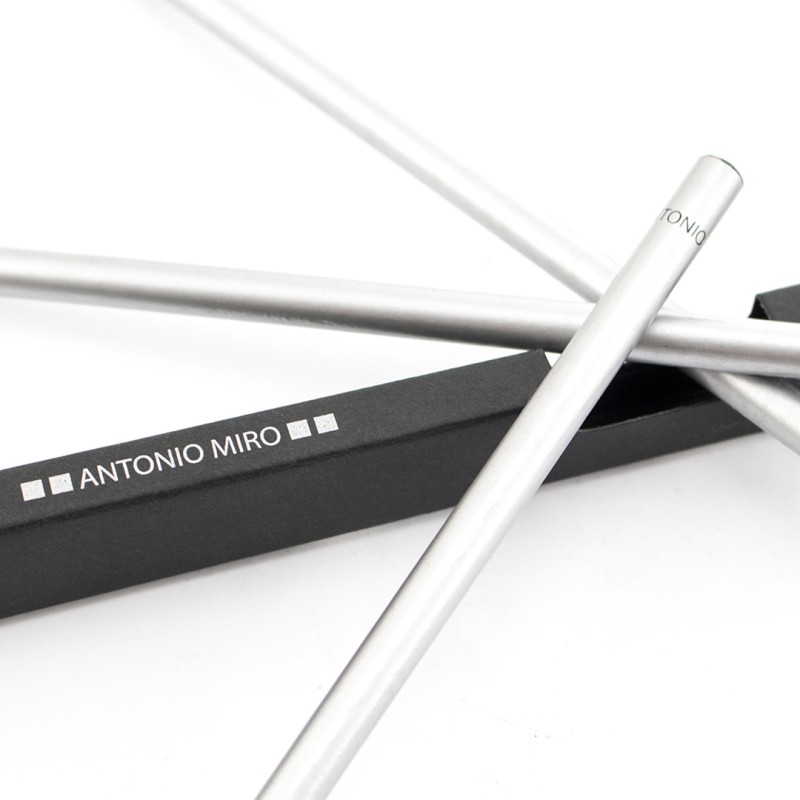 Este set de 3 lápices de madera de Antonio Miró destaca por su diseño elegante y sofisticado, con un acabado plateado que refleja estilo y distinción. Cada lápiz incorpora el logotipo de la marca en la parte superior, reforzando la identidad corporativa y convirtiéndolo en un detalle exclusivo para clientes, colaboradores o eventos especiales.