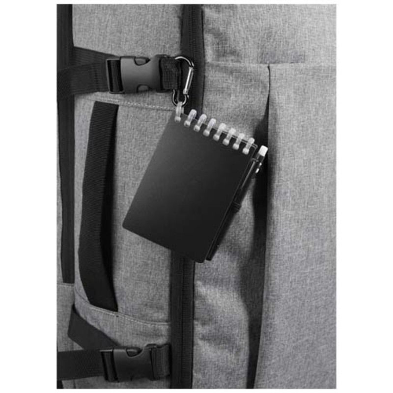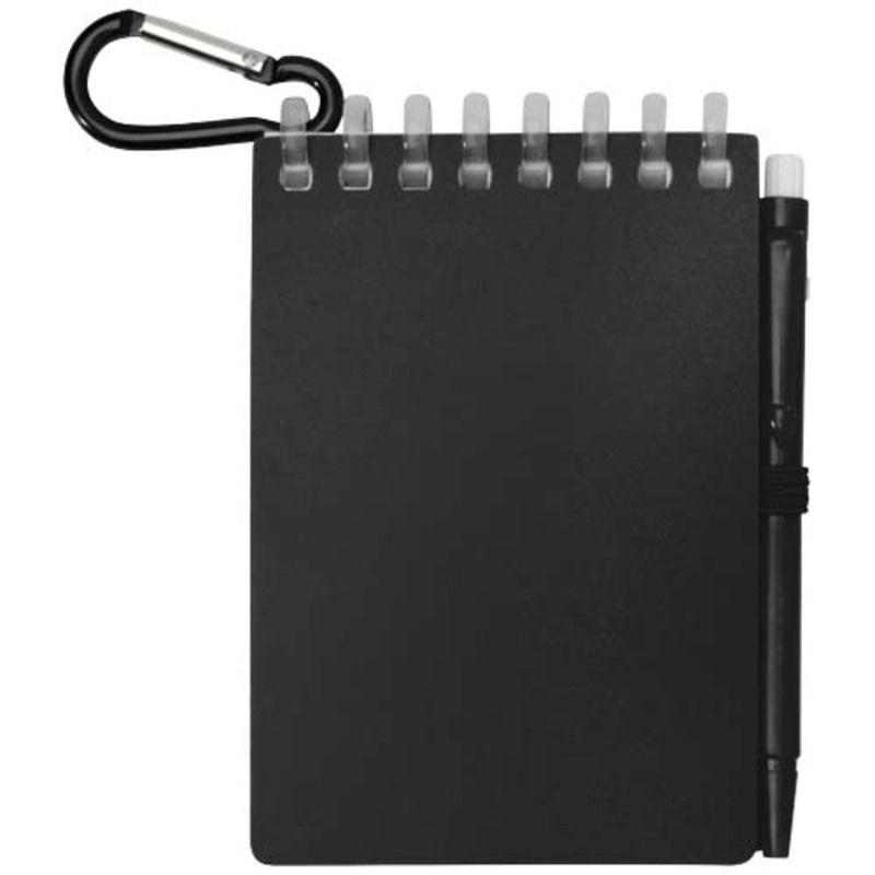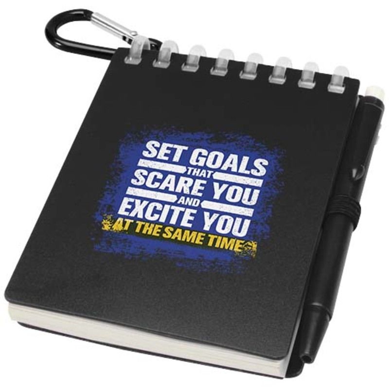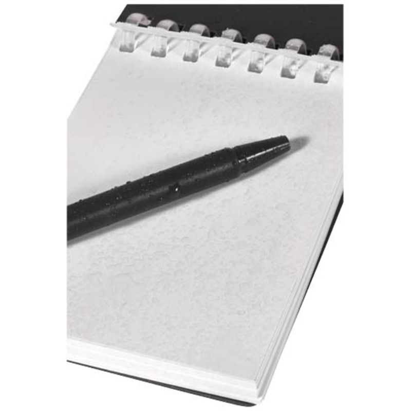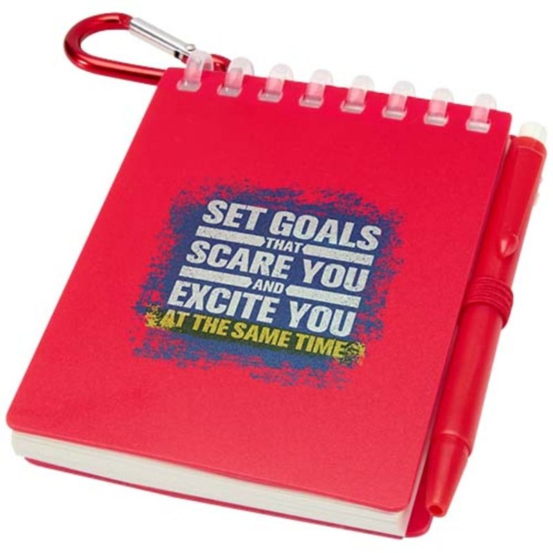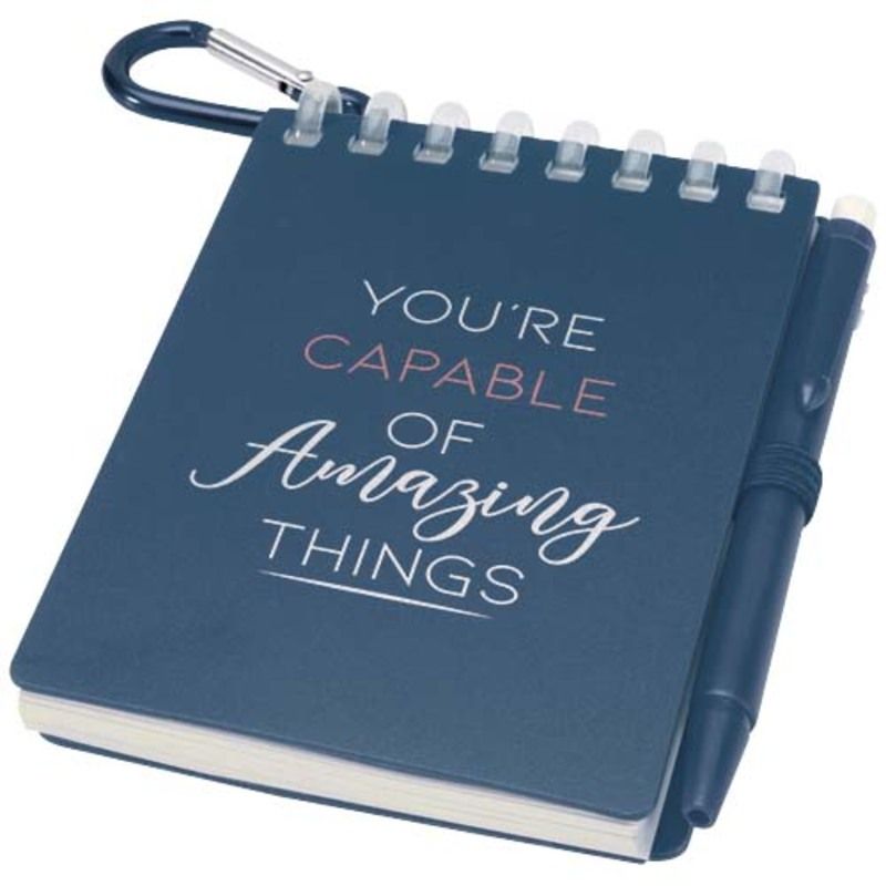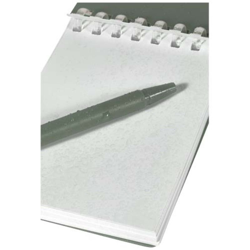 La practicidad de la marca Lig se manifiesta en detalles como las esquinas redondeadas y el soporte integrado que mantiene el instrumento de escritura siempre localizado. Al utilizar este bloc de notas con encuadernación en espiral, se dispone de una tapa suave de plástico recuperado que protege el interior sin añadir peso innecesario al equipo. El bolígrafo a juego, fabricado en ABS reciclado, ofrece una longitud de escritura de 250 metros y se sujeta firmemente gracias a una anilla metálica ideal para colgar en mochilas o llaveros.