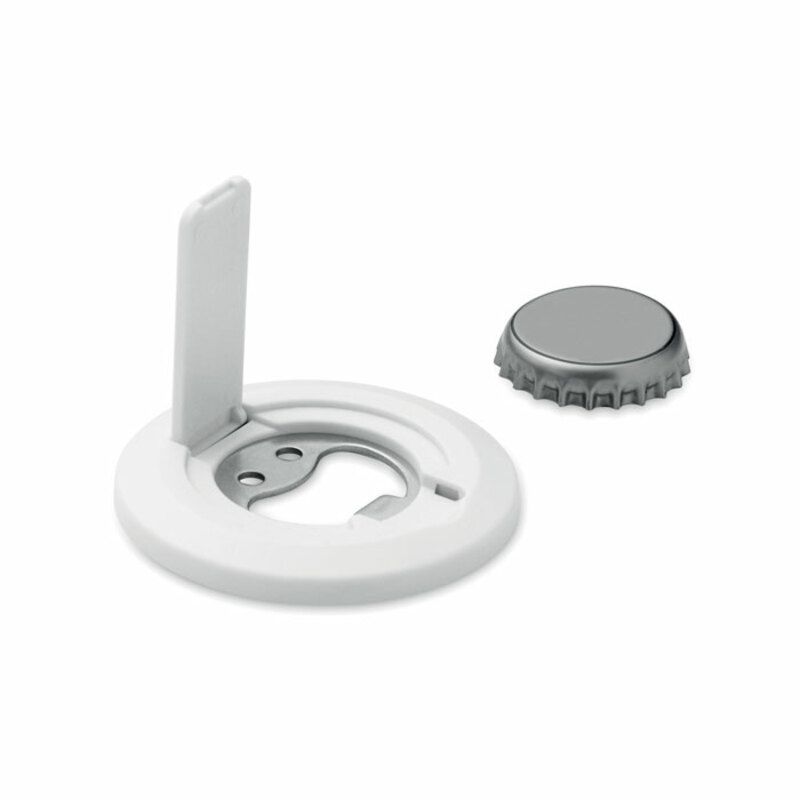 Este soporte magnético para teléfono Dosenuno con abrebotellas integrado es un accesorio práctico y original, pensado para acompañar acciones promocionales con un enfoque funcional. Su diseño compacto permite sujetar el teléfono de forma segura, facilitando el uso del dispositivo en reuniones informales, eventos o momentos de ocio.