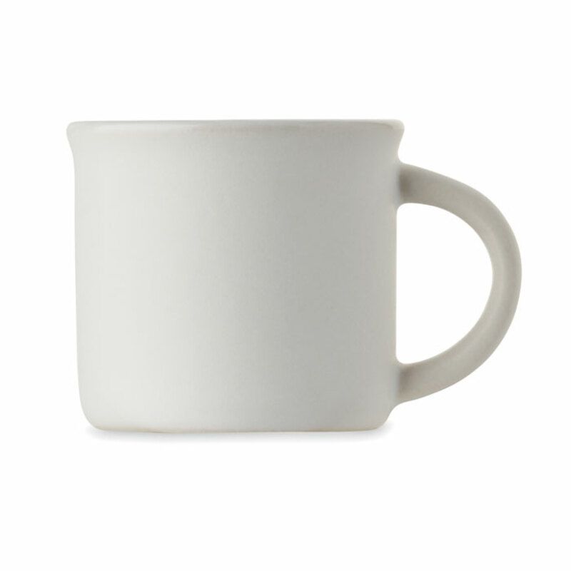 Con una capacidad de 40 ml, está especialmente diseñada para servir espressos, manteniendo el calor de la bebida por más tiempo. Cada unidad se presenta en una caja individual de cartón blanco, lista para entregar como obsequio corporativo o merchandising personalizado. Un detalle práctico y elegante para reforzar la presencia de tu marca en cada pausa para el café.