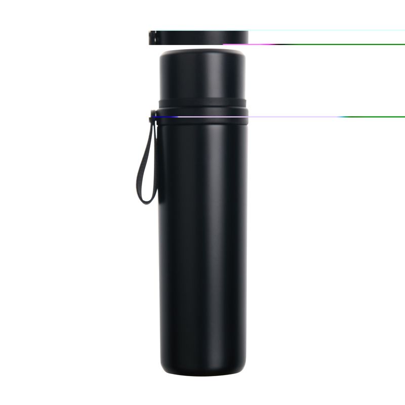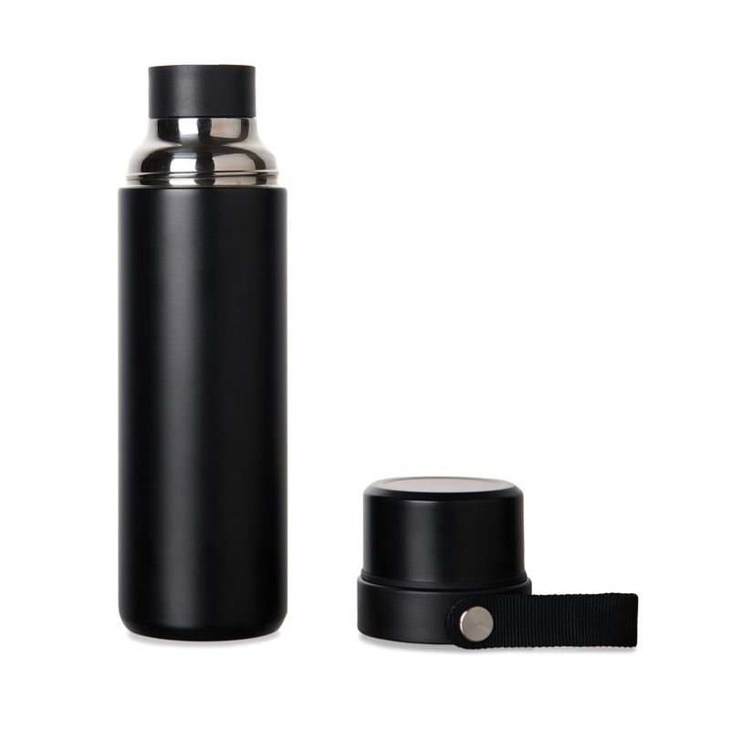 Equipado con aislamiento al vacío de doble pared, este termo mantiene las bebidas frías hasta 12 horas y calientes hasta 6 horas, garantizando siempre la temperatura ideal. Además, su tapa multifuncional puede dividirse en dos tazas, lo que lo convierte en una excelente opción para compartir un café en un descanso, un té en un viaje o una bebida fría en una salida al aire libre. Su asa de transporte integrada facilita llevarlo cómodamente en cualquier trayecto.