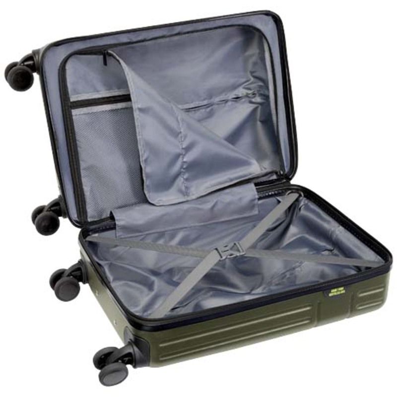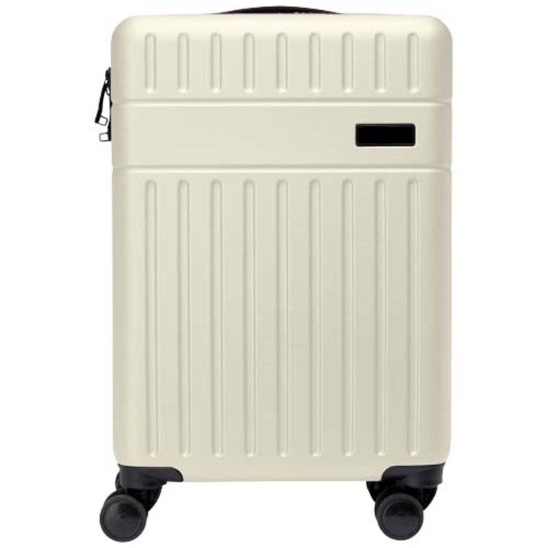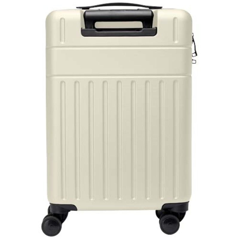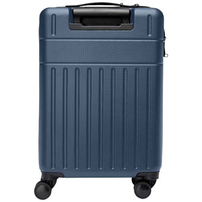 El trolley personalizable de cabina Rover de 20", confeccionado con plástico reciclado resistente a los impactos y forro de RPET, es un emblema de sostenibilidad y excelencia. La maleta presenta una pequeña placa que se puede personalizar mediante grabado láser.