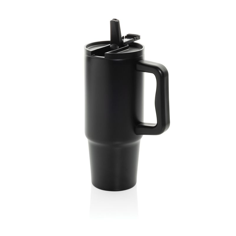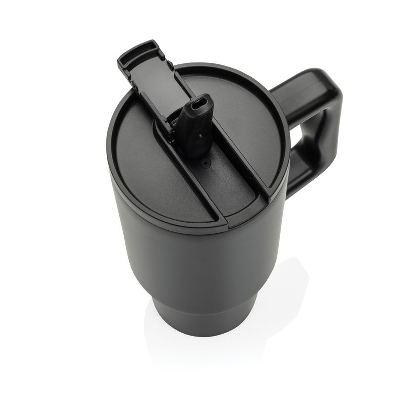Fabricado en acero inoxidable reciclado certificado RCS, este vaso combina resistencia con responsabilidad ambiental. Su construcción de doble pared con aislamiento al vacío mantiene tus bebidas frías o calientes durante horas, sin transferencias de temperatura al exterior. Además, la tapa de rosca completamente hermética con boquilla abatible garantiza un uso seguro, libre de derrames y sin necesidad de pajita, aportando una experiencia cómoda y moderna.