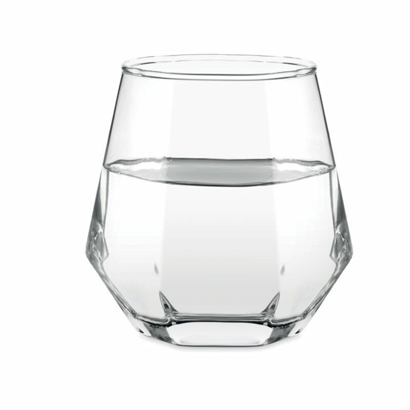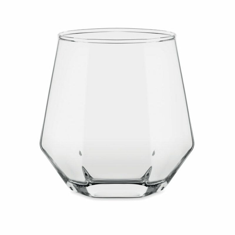 Este vaso cristal Kimbero destaca por su diseño geométrico en forma de rombo, aportando un estilo moderno y sofisticado a la presentación de bebidas. Su estética cuidada lo convierte en una pieza atractiva para entornos profesionales, eventos corporativos o acciones promocionales orientadas a un público adulto.